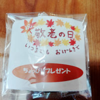 敬老の日の夕飯は、お赤飯とひいらぎハウスからのちょっぴりプレゼント付きです。