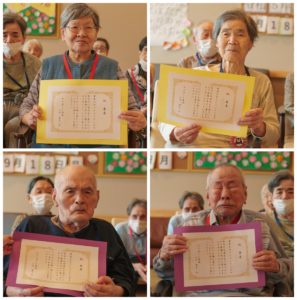 今年は10名の方が賀寿を迎えられ、賞状を渡すと「ありがとうございます」「賞状をもらえるとは思いませんでした」と喜んでいただけました😁