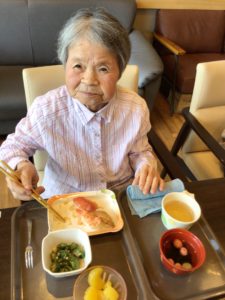 皆様久しぶりのお寿司という事もあり大変喜ばれ、「珍しかー!!」「何年振りだろか嬉しかよー」とペロリ😋♫