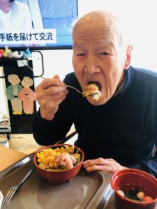 皆様久しぶりのお寿司という事もあり大変喜ばれ、「珍しかー!!」「何年振りだろか嬉しかよー」とペロリ😋♫