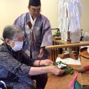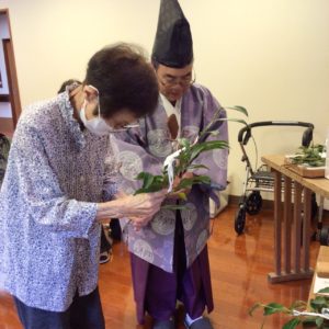 賀寿の節目を迎えられる利用者の方々へ、ご祈祷していただきました。