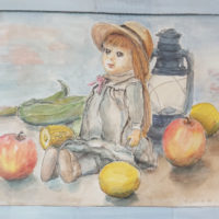玄関に、庭に咲いたキバナコスモスと大輪の百合を一緒に撮影してみました。