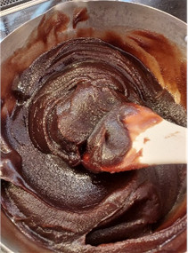 器にラップをぴんと張り、あんを薄く延ばしてもち米を載せます。