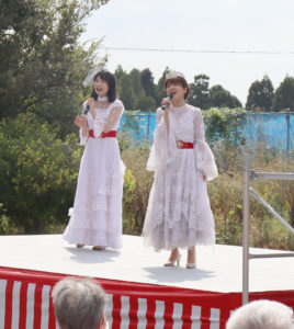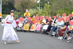 ステージショーの合間にひろやす荘デイサービス、ケアポート益城のPR(^_-)-☆