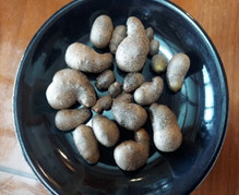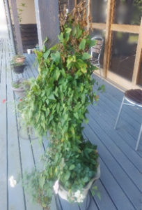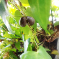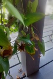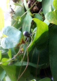 デッキにに植えた山芋に、球芽(むかご)が出来ました。