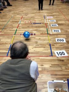 利用者様のボールがなかなか捕まってくれず、職員の思惑通りにはいきません。