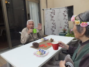 10月生まれのお誕生日の方も中庭でケーキを召し上がられました。