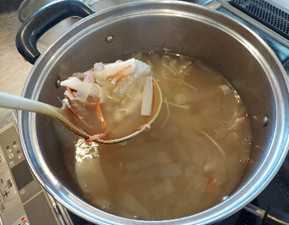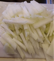 大きな冬瓜をカットして、食べやすいように切っていきます。