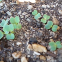 「あれ、芽が出てきたね。何の野菜ね、楽しみね~」