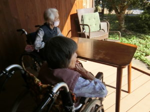 ウッドデッキにて外の景色を眺めながら茶話会🍵を行いました