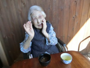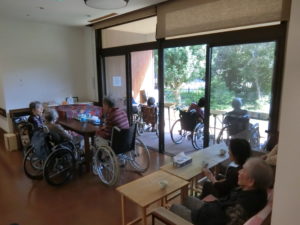 ウッドデッキにて外の景色を眺めながら茶話会🍵を行いました