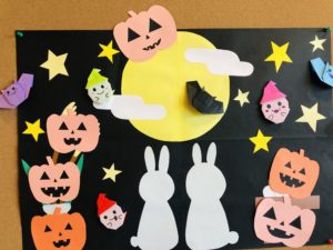 今回はお月見・ハロウィンの壁絵を作成しました🌕🐇🎃