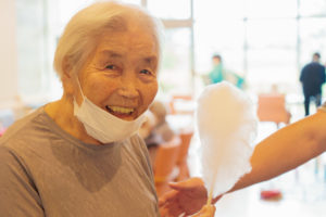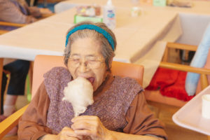 感染予防の為施設内での開催となりましたが、”綿菓子・たこ焼き・フライドポテト・イモ天”を