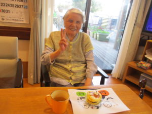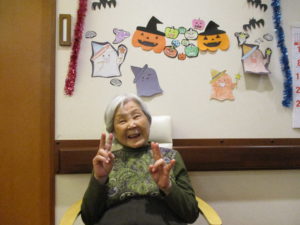 ご利用者様と一緒に作り、飾りつけをした作品たちと共に記念撮影😁