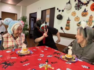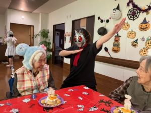 今年も利用者と一緒に職員も仮装をして楽しみました(^^♪