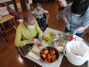実は先日、ご利用者様から、頂いた柿で干し柿を作りました😄