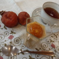 柿のジュレをのせて、完成です!!! ※ちなみに、干し柿も出来ましたよ😄