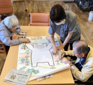 当施設では、日ごろからリハビリの一環として、脳トレや塗り絵、手作業を行っています。