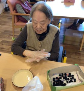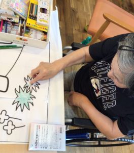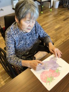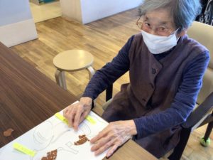 当施設では、日ごろからリハビリの一環として、脳トレや塗り絵、手作業を行っています。