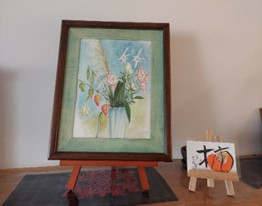 お借りして、絵画と一緒に玄関に展示させていただいています。