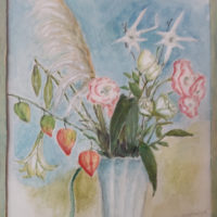 お借りして、絵画と一緒に玄関に展示させていただいています。