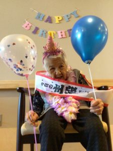 皆さんから「これからも、元気でいてくださいね。」とお祝いのメッセージを送られると、「ありがとうね。」とにっこりお返事して下さいました。
