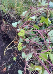 葉が地面を這い大きくなると、「芋が大きくなよるね」と声があり、