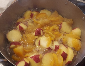 小さなさつま芋は、柚子ジャムと一緒に甘煮に・・
