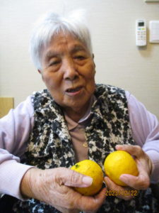 ご利用者様に「今日は冬至なので、ゆず湯を準備しましたよ~」と声掛けさせていただくと・・・