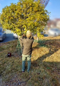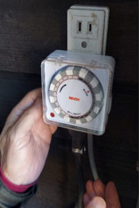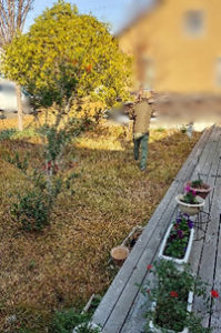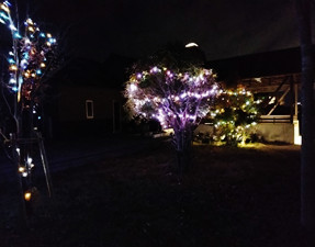 庭の4本の木々に脚立で上ったり、降りたり。そしてタイマー取付。