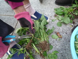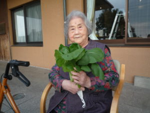 午後から天気も良くなったのでご希望されたご利用者数名と一緒に小松菜の収穫を行いました。