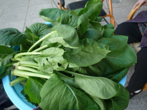 収穫した小松菜を皆さんに披露しました。「綺麗に出来たね~」感動されていました。