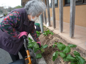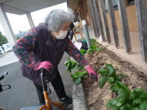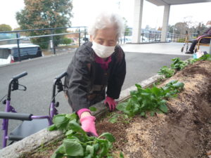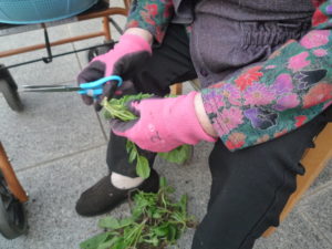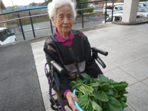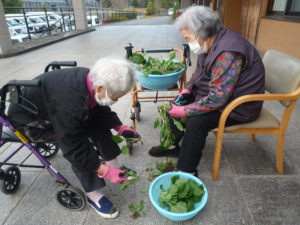 午後から天気も良くなったのでご希望されたご利用者数名と一緒に小松菜の収穫を行いました。