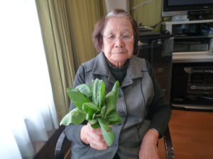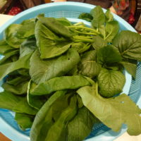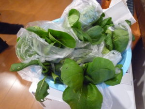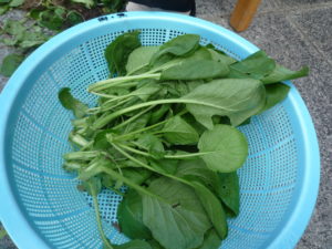 収穫した小松菜を皆さんに披露しました。「綺麗に出来たね~」感動されていました。