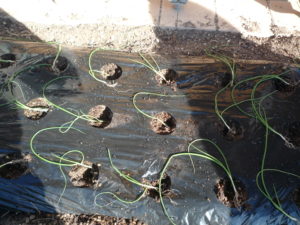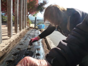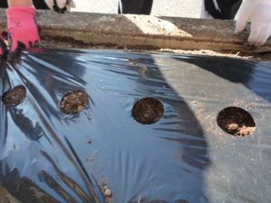 ビニールの四隅と周りに土をかぶせて、風が吹いても飛ばないようにもしました。