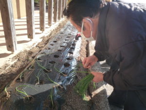 一週間後、お天気も良かったので、園芸希望の利用者様と一緒に「新玉ねぎ」の苗を植えました。
