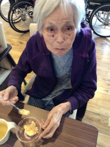 利用者様の美味しそうな表情を見て、とても癒される時間となりました。