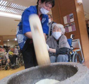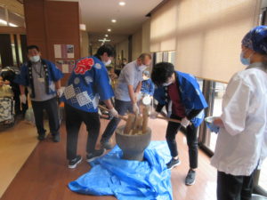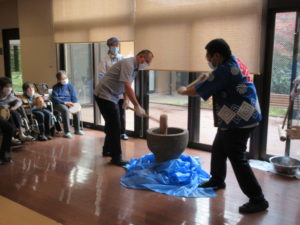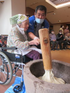 ひろやす荘でもお正月に欠かせない鏡餅を作るべく、餅つきを行いました。