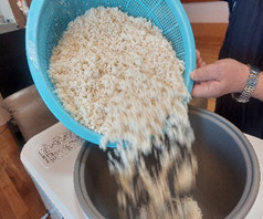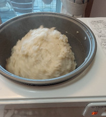 2日前から洗って、浸していたもち米を餅つき機に入れてます。