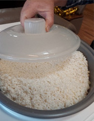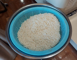2日前から洗って、浸していたもち米を餅つき機に入れてます。