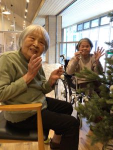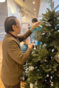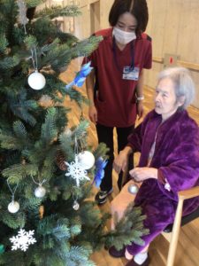 そこで、利用者の皆さまと一緒にクリスマスツリーの飾り付けをしました。