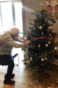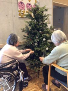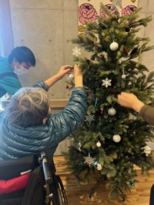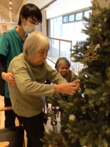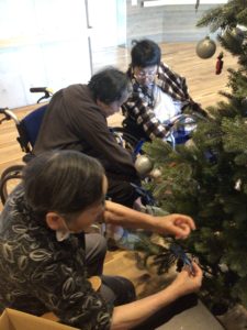 そこで、利用者の皆さまと一緒にクリスマスツリーの飾り付けをしました。