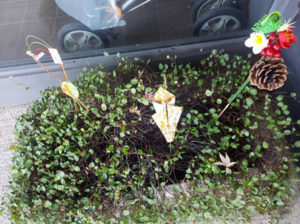 又年末に入居者様が頂いたリースに正月らしく飾りつけしてくれました。