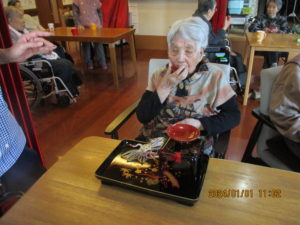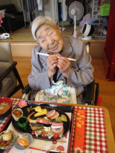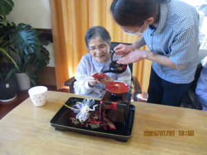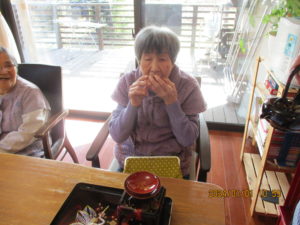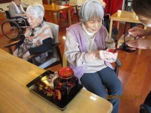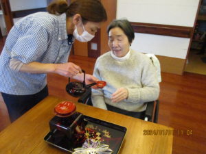 「美味しいですよ~」「上手にできとるたい」とおせちは大好評でした。