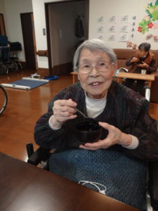鏡開きにて、おやつは、芋ぜんざいを頂きましたよ(‘ω’)ノ