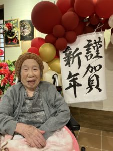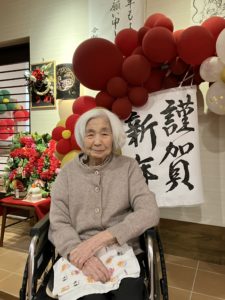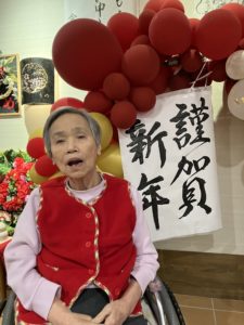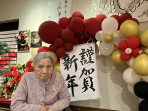 うめユニットの後方の設え(バルーンアート)は手先が器用でアイデア豊富な職員が考えました。