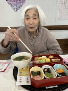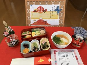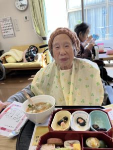 栄養課で用意された手作りの雑煮と、そしてとても豪華なお節料理を味わいます!(^^)!
