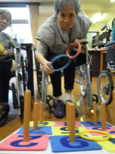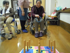 誕生日会のレクリエーションとしまして、ご利用者様よりご希望のあった「輪投げ」を行いました。