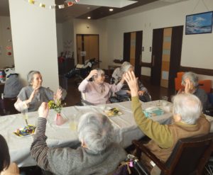 音楽が流れると自然に手が♬「あんたがさどこさ」と「春よ来い」も唄いました♫