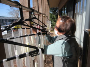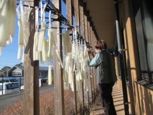 日光がまんべんなく当たる様に紐を交互にずらして、丁寧に干しておられました。
